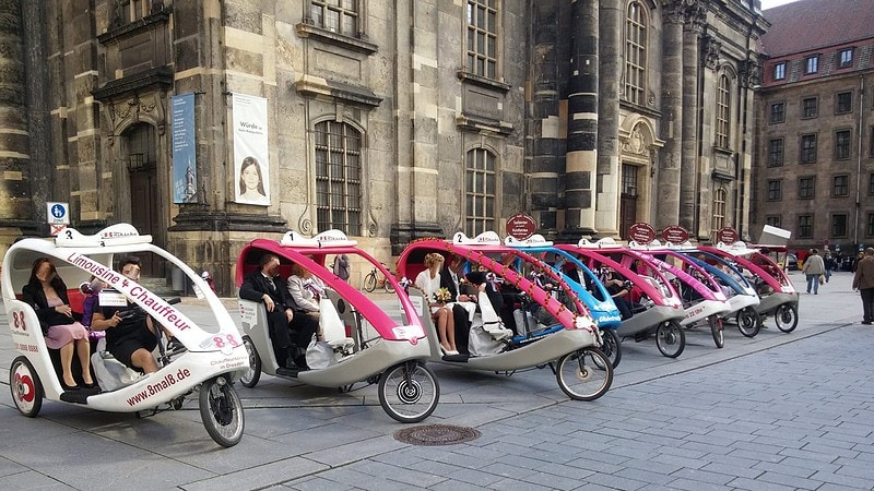 Diese Rikschafahrt durch Dresden ist eine ganz besondere Tour. Hier steht die Liebe, Zweisamkeit und Romantik an erster Stelle. Schon die 55 minütige Rikschafahrt durch die Dresdner Altstadt ist an Romantik und Zweisamkeit nicht zu überbieten. Einfacher, schneller und eleganter kann man nicht durch Dresden fahren. Bei der Rundfahrt geht es natürlich entlang der bekannten Sehenswürdigkeiten der Landeshauptstadt Dresden. Das Ende ist hier die Elbe – an den Elbwiesen kann die romantische Fahrt bei Fackel-Licht, Sekt und guter Laune Revue passiert werden lassen.