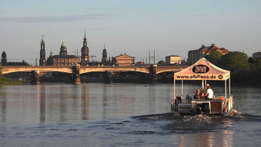 Die Tour beginnt am Yachthafen Dresden auf der Leipziger Straße, wo die Teilnehmer vom erfahrenen Skipper begrüßt werden. Nach einer kurzen Einweisung in den Ablauf legt das Floß ab und gleitet entspannt die Elbe entlang. Während der Rundfahrt genießen die Teilnehmer den Blick auf die Sehenswürdigkeiten Dresdens, während der Skipper für eine sichere und angenehme Fahrt sorgt. Bequeme Sitzgelegenheiten, Decken und Sonnenschutz sorgen für höchsten Komfort. Speisen können selbst mitgebracht werden, während Getränke vor Ort erhältlich sind. Die Rundfahrt ist in drei Varianten mit einer Dauer von 1,5, 2 oder 2,5 Stunden buchbar und kann von April bis Oktober flexibel nach Terminvereinbarung geplant werden – die Tagesmitgliedschaft ist dabei bereits inklusive.