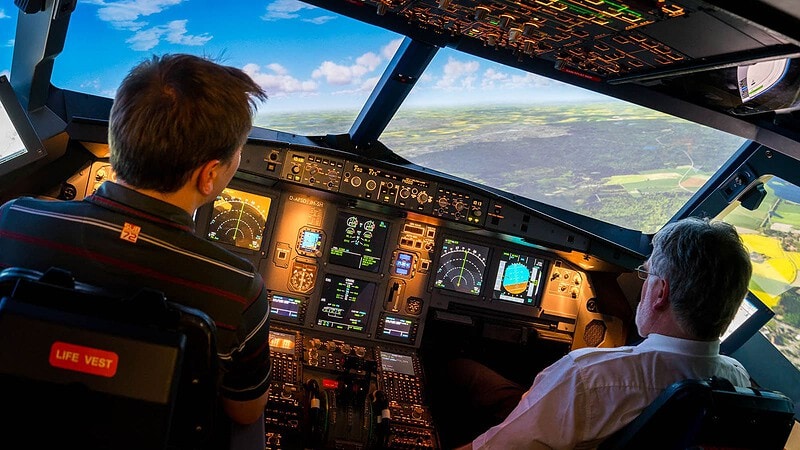 Ein Flugsimulator ist die Simulation vom Fliegen eines Passagierflugzeuges. In der Regel ist das gesamte Cockpit des Flugzeugs originalgetreu nachgebildet, sodass es sich für den Teilnehmer so anfühlt als wäre alles echt. Der Ausblick wird mittels mehreren Bildschirmen oder einer Projektion gewährleistet. Es können während des Fluges auch verschiedene Situationen simuliert werden. Übrigens müssen auch echte Piloten während der Ausbildung Stunden im Simulator nehmen und auch noch während der aktiven Zeit.