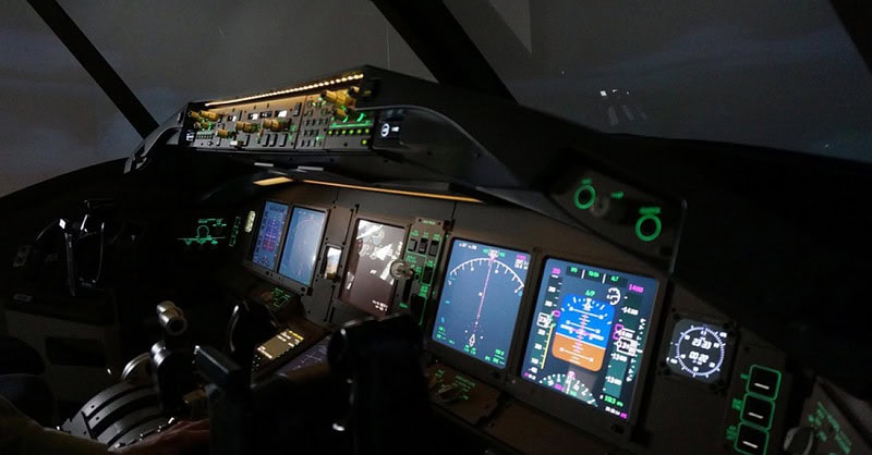 Zuerst wirst Du freundlich von unseren Piloten mit einem Getränk an der Theke empfangen. Dann geht es schon direkt los: Vor und nach dem Flug gibt es ein kleines Briefing, dass Dich darauf vorbereitet wie Du mit der Technik umzugehen hast. Anfangs scheint dies fast unmöglich mit all den Knöpfen, Hebeln, Instrumenten und Displays, doch es hilft Dir ein Experte auf dem Gebiet Dich zurecht zu finden. Dieser spielt dann während des Fluges den Co-Piloten, um Dir hilfreiche Tipps zu geben. Schon nach etwa 15 Minuten kennst Du die wichtigsten Geräte und kannst schon ziemlich gut das riesen Flugzeug steuern. Wenn ein Manöver doch etwas missglückt – kein Problem, wir sind ja nur in einer Simulation, welche sich jedoch verdammt echt anfühlt.