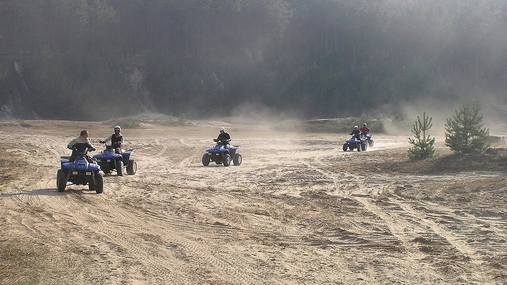 Unser Guide erwartet Euch bereits vor Ort und Ihr probiert erst einmal die Helme auf, Sicherheit geht immer vor. Nachdem alle ausgestattet wurden, geht es auch schon auf die Quads. Die ein oder anderen haben vielleicht schon Erfahrung mit dem Gefährt gemacht, dennoch ist unsere JGA Quad Tour in Berlin bestens für alle geeignet, da unser Guide exklusiv für Euch da ist und auf Eure Wünsche und Erfahrungen eingehen kann. Nach einer kurzen Proberunde geht es ab ins Gelände. Hügelige Pisten, Schlammlöcher und pure Natur erwarten Euch hierbei. Unser ortskundige Guide kennt dieses Gebiet wie seine Westentasche und führt Euch gekonnt zu leichten und schwierigen Hindernissen, welche es zu bezwingen gilt.
