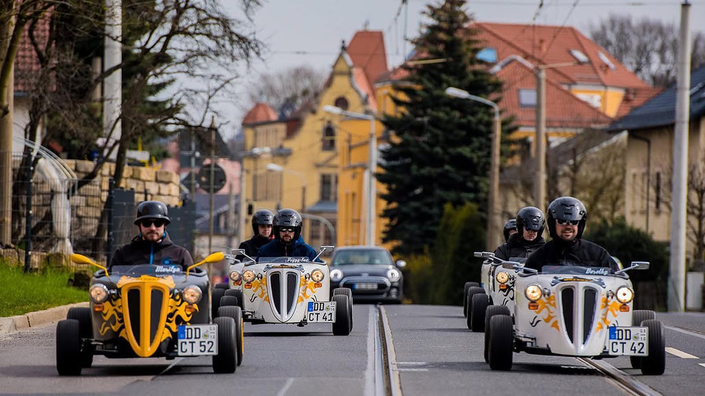 Diese ausgefallenen Flitzer bieten alles, was Mann sich nur wünscht. Klein, wendig und mit ordentlich PS ziehen die bunten Fahrzeuge garantiert Blicke auf sich. Mit unserem Guide fahrt Ihr zu versteckten Ecken und wundervollen Sehenswürdigkeiten in Dresden. Natürlich ist auch immer Zeit für ein paar Erinnerungsfotos von dem unvergesslichen Junggesellenabschied. Nach 90 Minuten ist der ganze Fahrspaß auch schon wieder vorbei und nach einem kleinen Päuschen kommt auch schon der nächste Kracher des Tages.