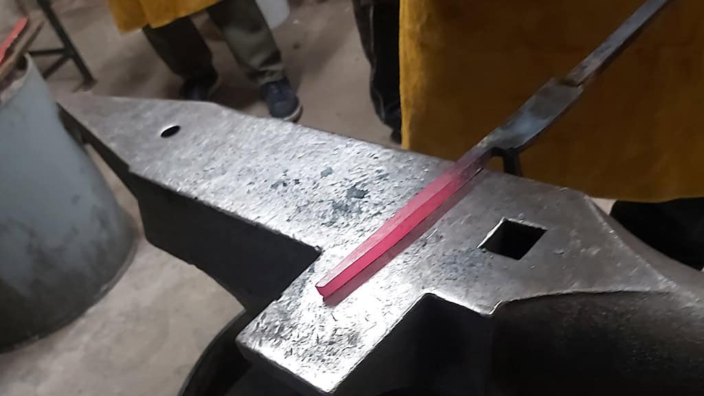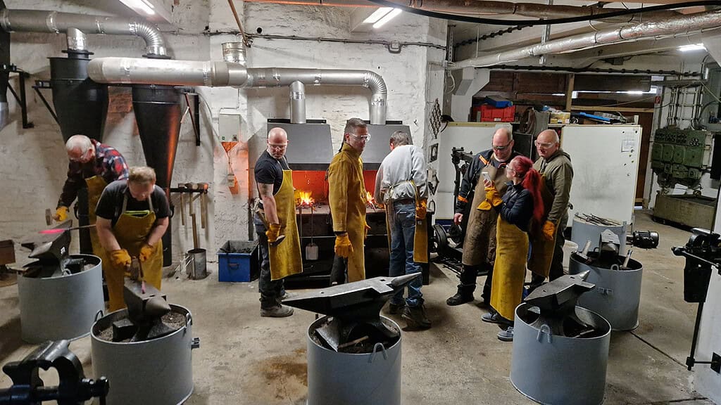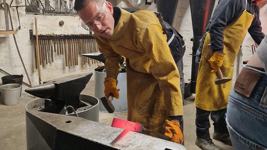 Die Teilnehmer treffen sich alle in der Schmiede in Rossau, denn hier erwartet die Teilnehmer der charmante und versierte Kursleiter. Er steht selbst jeden Tag in der Schmiede und erschafft mit seinen Werkzeugen die besten Messer. Daher ist es nicht verwunderlich, dass er einer der besten Messerschmiede der Region ist. Nach dem ersten Kennenlernen und einer Sicherheitseinweisung geht es dann auch schon los. Die Arbeitshose und Sicherheitsschuhe, die jeder Teilnehmende selbst mitbringen muss, werden von einer Vielzahl an weiteren Arbeitsmitteln ergänzt. Denn bekanntlich wird beim Schmieden von Metall einiges an Hitze benötigt. Daher wird vorher nochmals alles genauestens theoretisch besprochen, bevor es dann an das Highlight geht, das Schmieden vom eigenen Messer.
