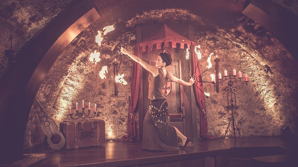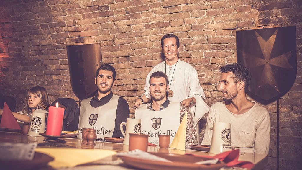 Das Ritteressen ist ein thematisches Event, das in einer mittelalterlichen Atmosphäre stattfindet. Es umfasst ein Festmahl, bei dem Du in historischen Kostümen speisen und Unterhaltung wie Musik, Tänze oder Ritterkämpfe genießen wirst.