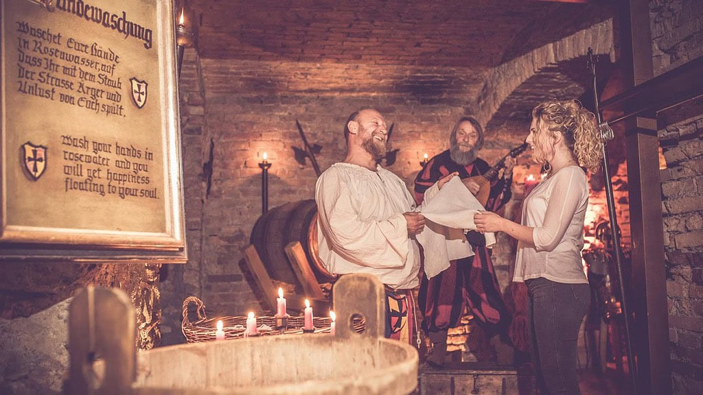 Eine Erfahrung, die man nicht vergessen wird: Eine Reise zurück ins Mittelalter und in eine Welt voller mutiger Ritter und vornehmer Burgfräulein! Möchtest Du Deine Liebsten mit etwas ganz Besonderem überraschen? Dann verschenke doch einen Erlebnisgutschein für ein Abend im Aulendorfer Ritterkeller! Dort erwartet den Beschenkten ein Ritteressen der Extraklasse, das er so schnell nicht vergessen wird. Schon beim Betreten des Gewölbekellers wird man in eine längst vergangene Zeit entführt. Der Duft von köstlichen Gerichten und exotischen Gewürzen erfüllt die Luft und weckt die Vorfreude auf ein herzhaftes Mahl. Die mit Hingabe und Sorgfalt gestaltete Räumlichkeiten entführen den Betrachter augenblicklich in die Welt der Ritter und lassen ihn in längst vergangene Zeiten eintauchen. Überrasche Deine Liebsten mit einem einzigartigen Erlebnis – einem Gutschein für das Ritteressen im Aulendorfer Ritterkeller!