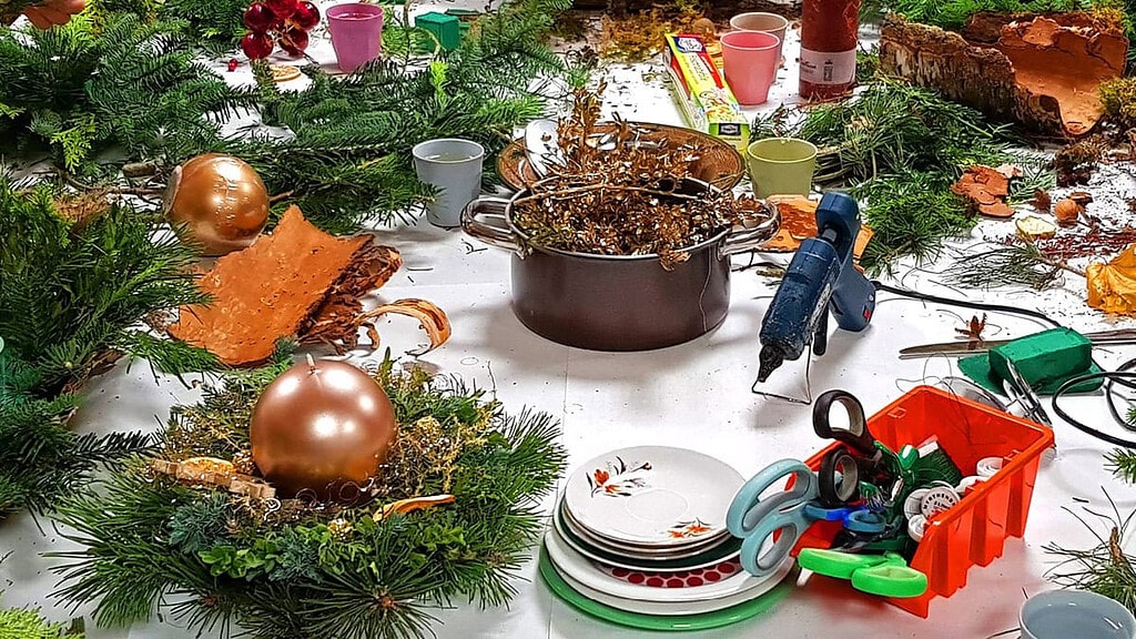 Aus frischen Naturmaterialien bastelt Ihr in der Kerzenwerkstatt aus Dresden wunderschöne Kränze oder Gestecke, die sich sehen lassen können! Eurer Fantasie und Kreativität sind dabei keine Grenzen gesetzt. Die Liebe steckt hier im Detail: Mit niedlichen kleinen Holzrentieren, Schmetterlingen, Zimtstangen, Eukalyptusblättern, Goldsternen und vielem mehr könnt Ihr Euren Kranzgestecken Eure ganz persönliche Eigennote verleihen. Wie wäre es denn zum Beispiel mit einem Haarkranz? Die Krone aus natürlichen Materialien sieht besonders auf Fotos hübsch aus. In einer harmonischen Atmosphäre verwandelt sich die Kreativwerkstatt in ein echtes Bastelwunderland. Im gemütlichen Beisammensein zaubert Ihr wunderschöne Einzelstücke. Schritt für Schritt zeigen Euch die kreativen Köpfe der Kunstwerkstatt, wie Ihr zu Eurem Ergebnis kommt und helfen Euch bei jedem Handgriff. Alle Materialen stehen Euch frei zur Verfügung und das Beste daran? Euren selbstgemachten Kranz könnt Ihr direkt mit nach Hause nehmen und Euch jederzeit an das schöne Bastelerlebnis erinnern. Langlebige Trockenblumen machen es möglich. Gern könnt Ihr Euch auch für eine Variante mit Frischblumen entscheiden. Ihre leuchtenden Farben sind ein besonders auffälliger Hingucker in Eurem Kunstwerk. So ein schönes Dekoelement für zu Hause bekommt Ihr nirgendwo zu kaufen, denn die schönsten Dinge sind handgemacht!