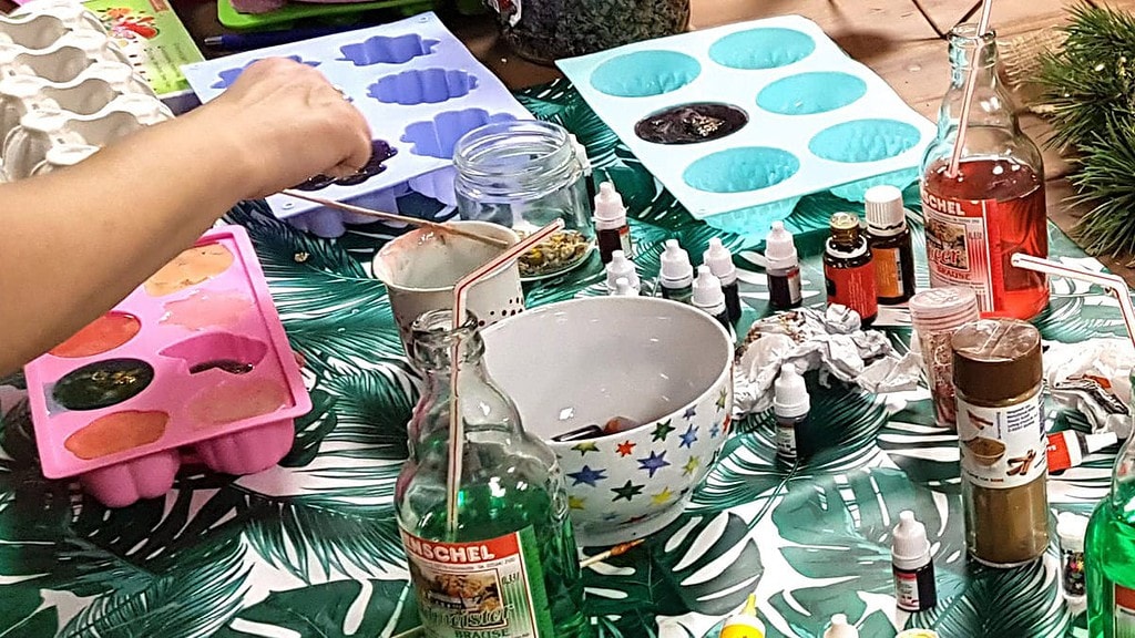 Damit der Kreativität freien Lauf gelassen werden kann, sind alle notwendige Zutaten vorab sorgfältig in der Werkstatt vorbereitet wurden. Dort geht ein wohltuender Duft von ätherischen Ölen, Kräutern und Peeling-Zusätzen umher und überall liegen knallige Farben zur Verwendung bereit. Es begrüßen den Beschenkten zu Beginn erfahrene Kursleiter, die spannendes Wissen rund um das Thema Seife parat haben. Unter professioneller Anleitung werden dann Schritt für Schritt die favorisierten Materialien kombiniert, so dass Dein Lieblingsmensch zum Schluss vier bis sechs einzigartige handgemachte Seifen in den Händen hält. Bei jeder Anwendung kommen die Erinnerungen an dieses lehrreiche und außergewöhnliche Erlebnis wieder hoch!